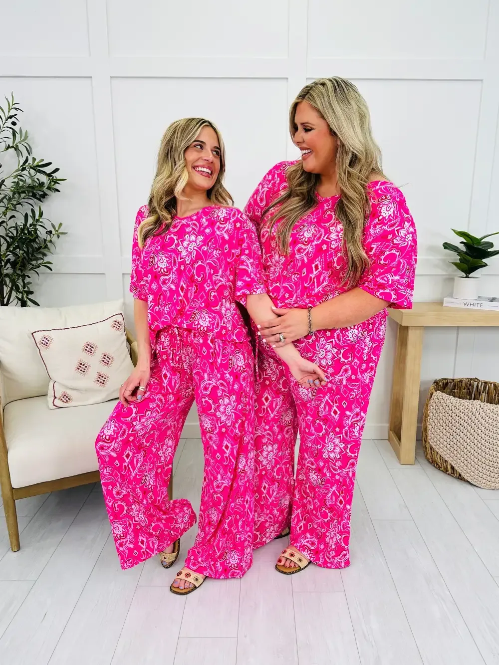 This printed set is the perfect set to wear when it's warm outside. This cool to the touch, dreamy material feels so amazing and it is 100% wrinkle free, so you can get up and go! The elastic waist-band and functional drawstring give you the perfect fit!