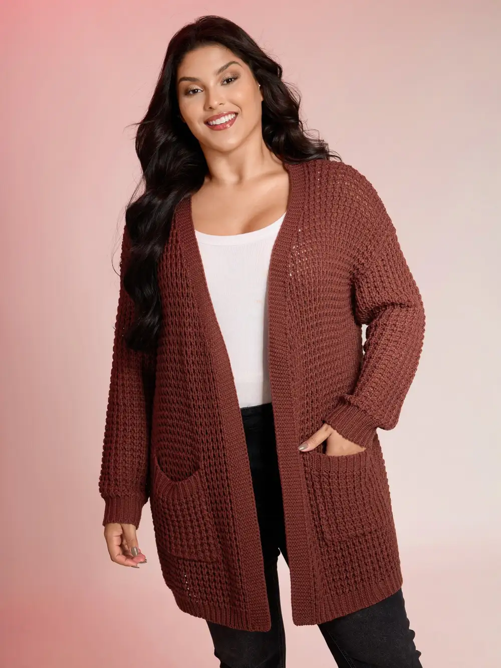 Shop Vintage Textured Pockets Knit Cardigan now and redefine your style with confidence at BloomChic. Tailored for mid and plus-size women. This trendy Sweaters Cardigans Women, sizes 10-30. Color:Rust;Neckline:Kimono collar;Sleeve Type:Regular Sleeve;Prints:Non;Details:Cut-Out, Texture;Pocket:Patch pocket;Belt:No-belt;Closure Type:Open front without closure