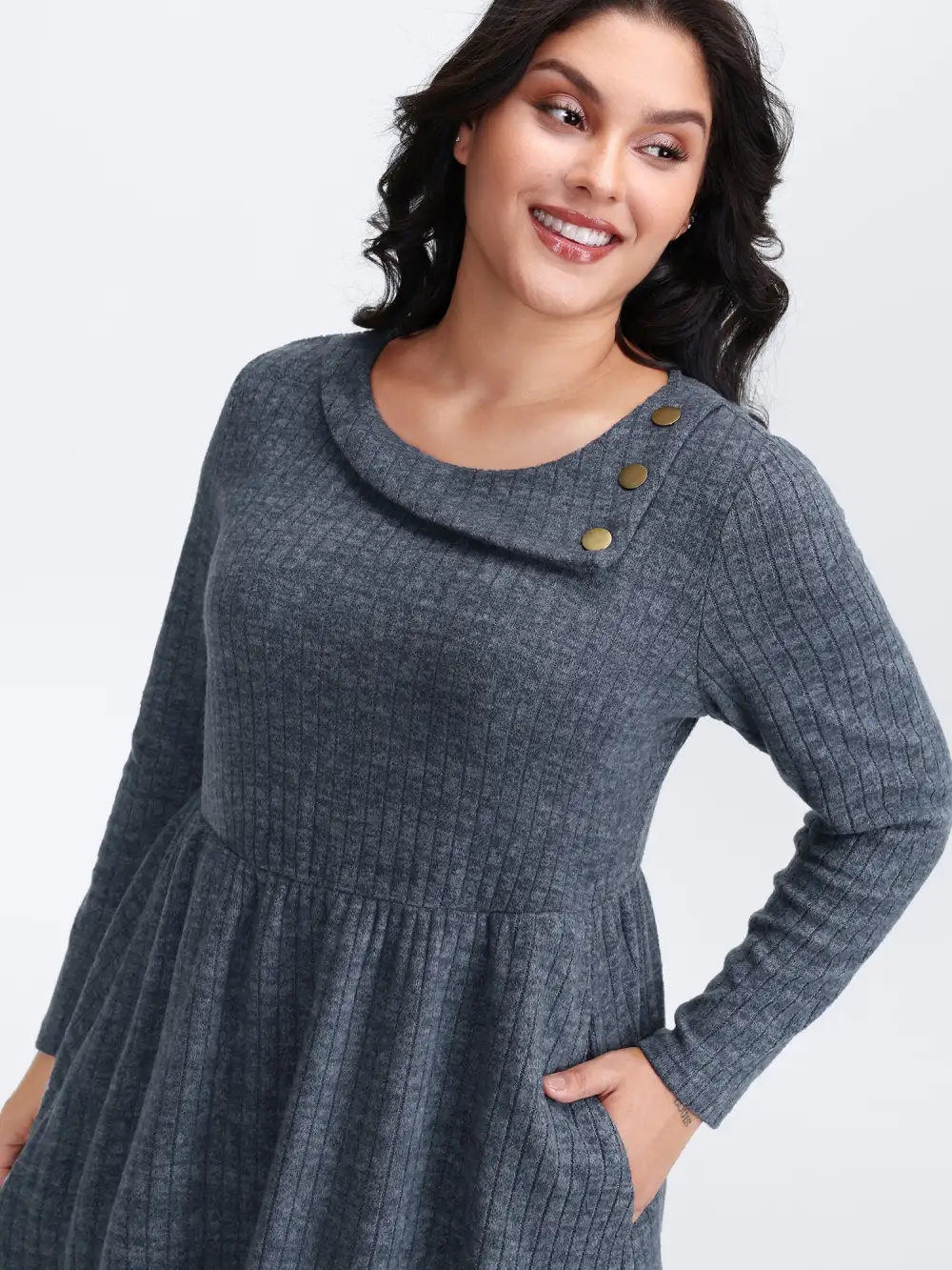 Shop Waffle Velvety Feel Asymmetrical Neck Midi Dress now and redefine your style with confidence at BloomChic. Tailored for mid and plus-size women. This trendy Dress, sizes 10-30. You can never go wrong with BloomChic Dresses. Color:Indigo;Neckline:Round Neck;Sleeve Type:Regular Sleeve;Prints:Synthetic texture;Details:Button, Texture;Pocket:Side seam pocket;Belt:No-belt;Closure Type:Non
