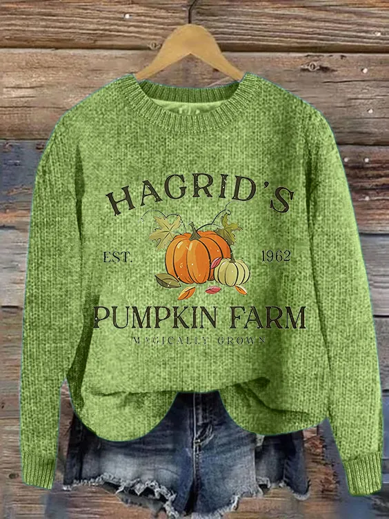 Women's Hagrid'S Pumpkin Patch Print Loose Knitted Simple Sweater