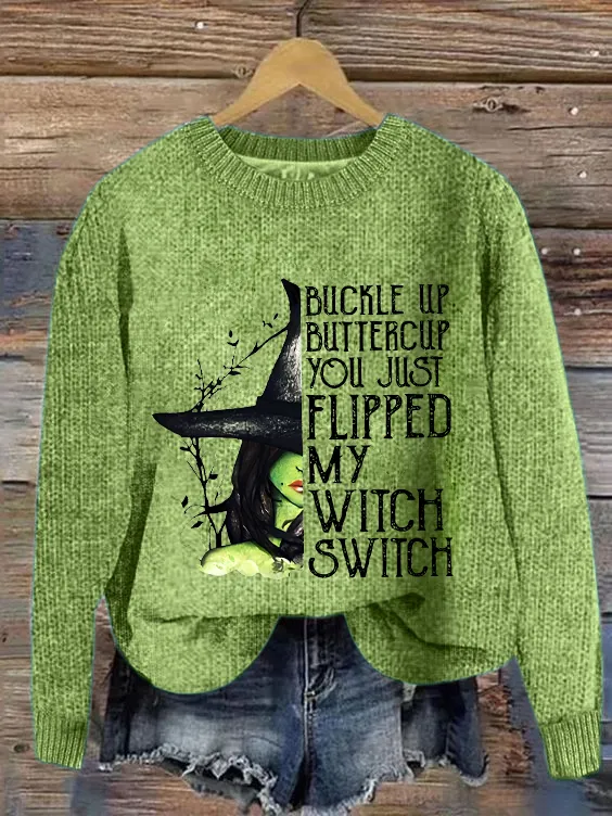 Women's Halloween Buckle Up Buttercup You Just Flipped My Witch Switch Print 3D Printing Knitted Sweater