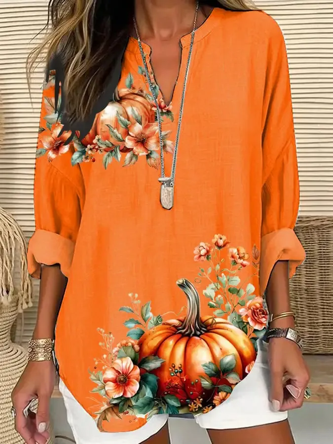 Women's Autumn Casual Gradient Cotton and Linen Long Sleeve Shirt