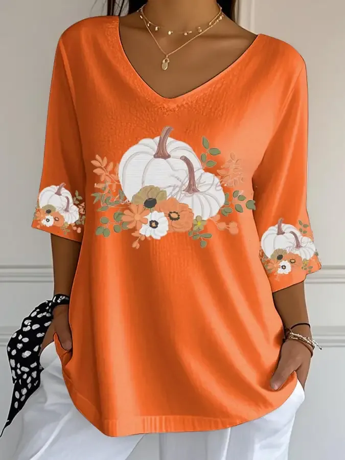 Women's Autumn Maple Leaf Printed Bubble Wrinkle Top