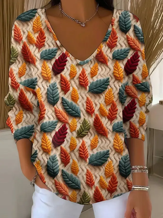 Women's Retro Autumn Maple Leaf Print Sweater 10917395