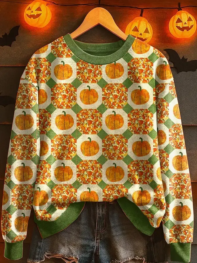 Women's Retro Autumn Pumpkin Print Sweatshirt